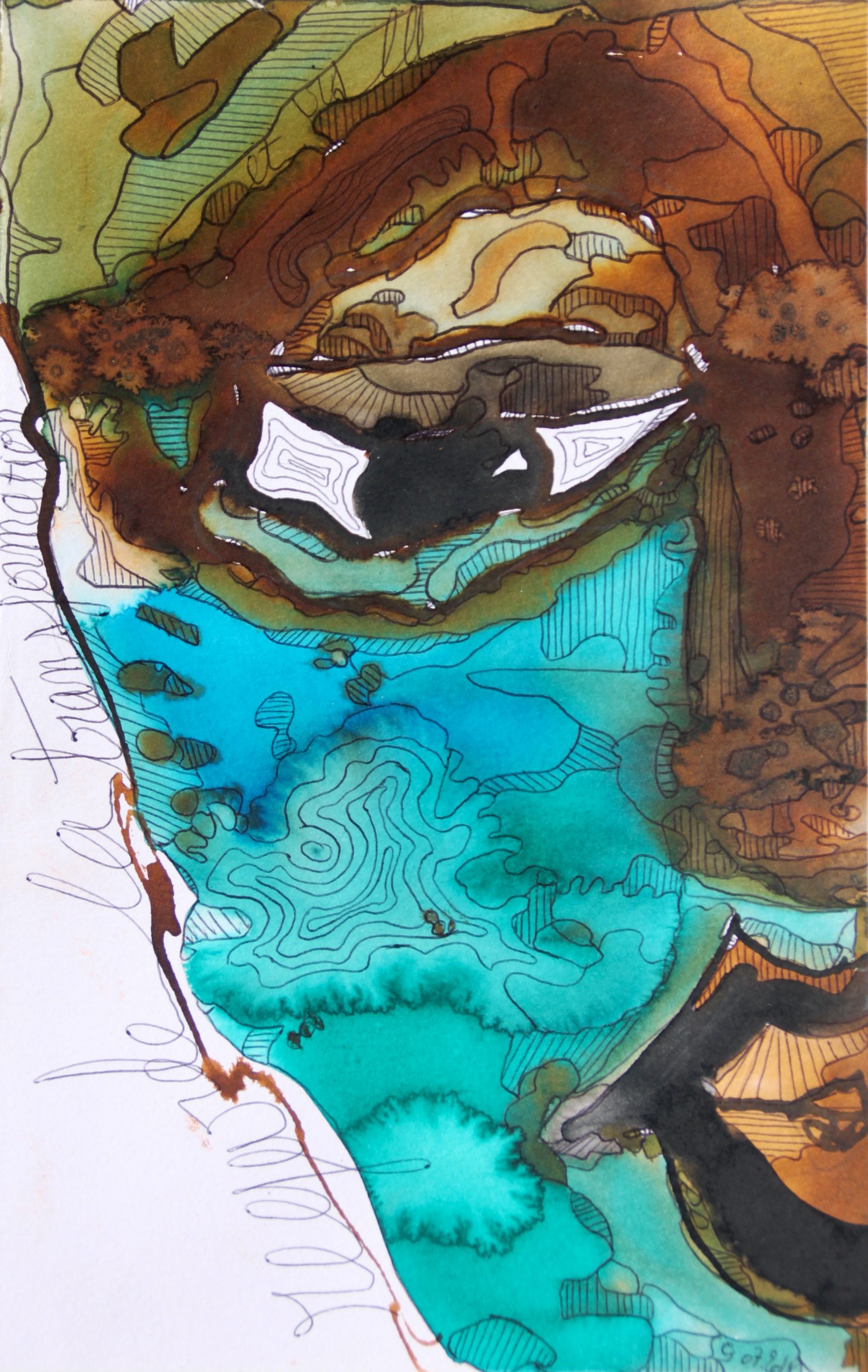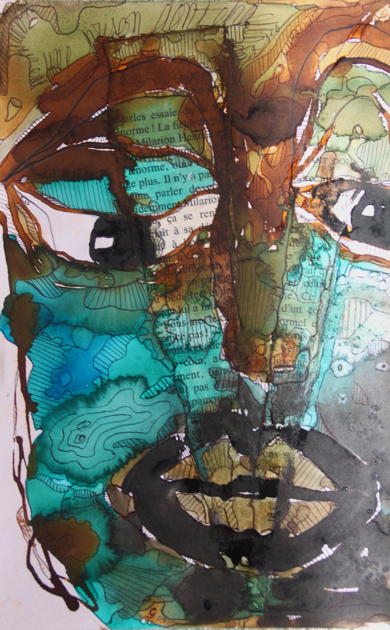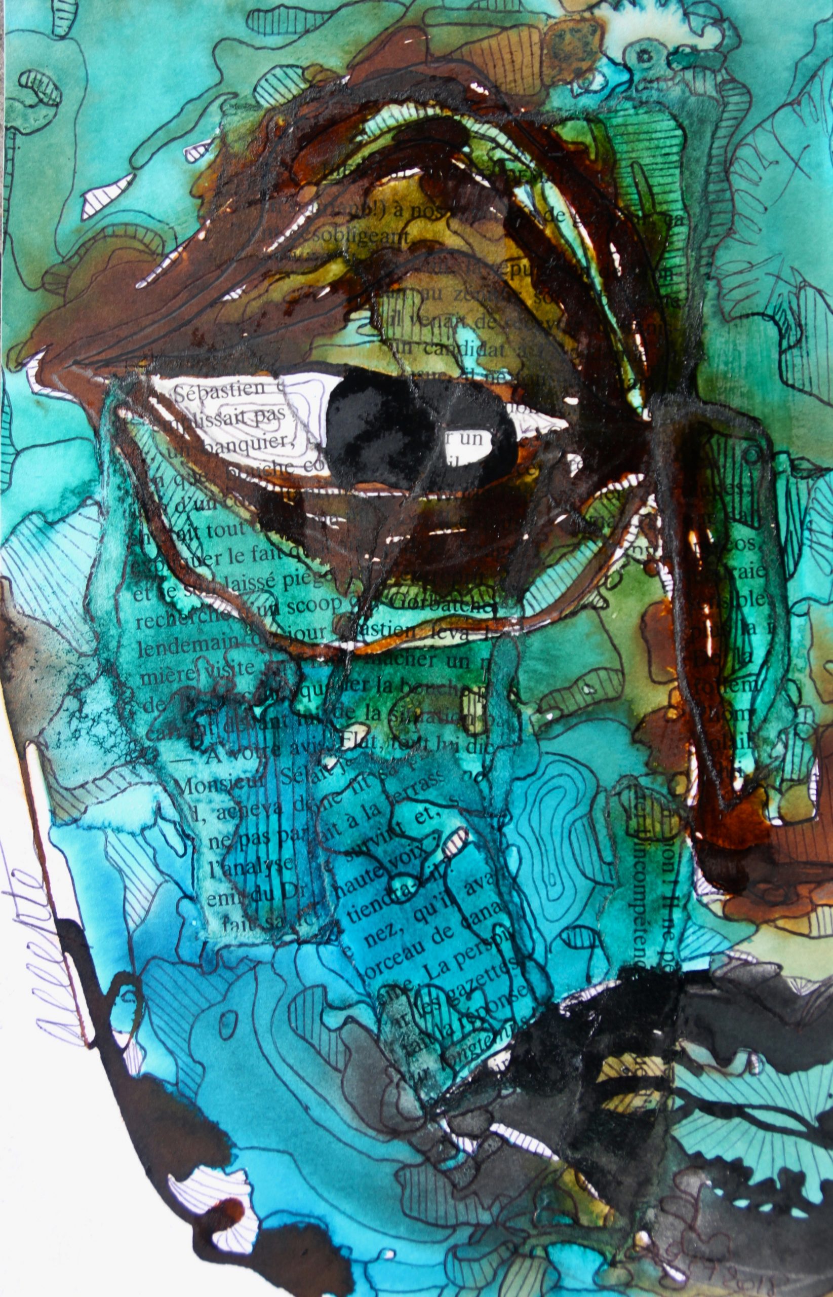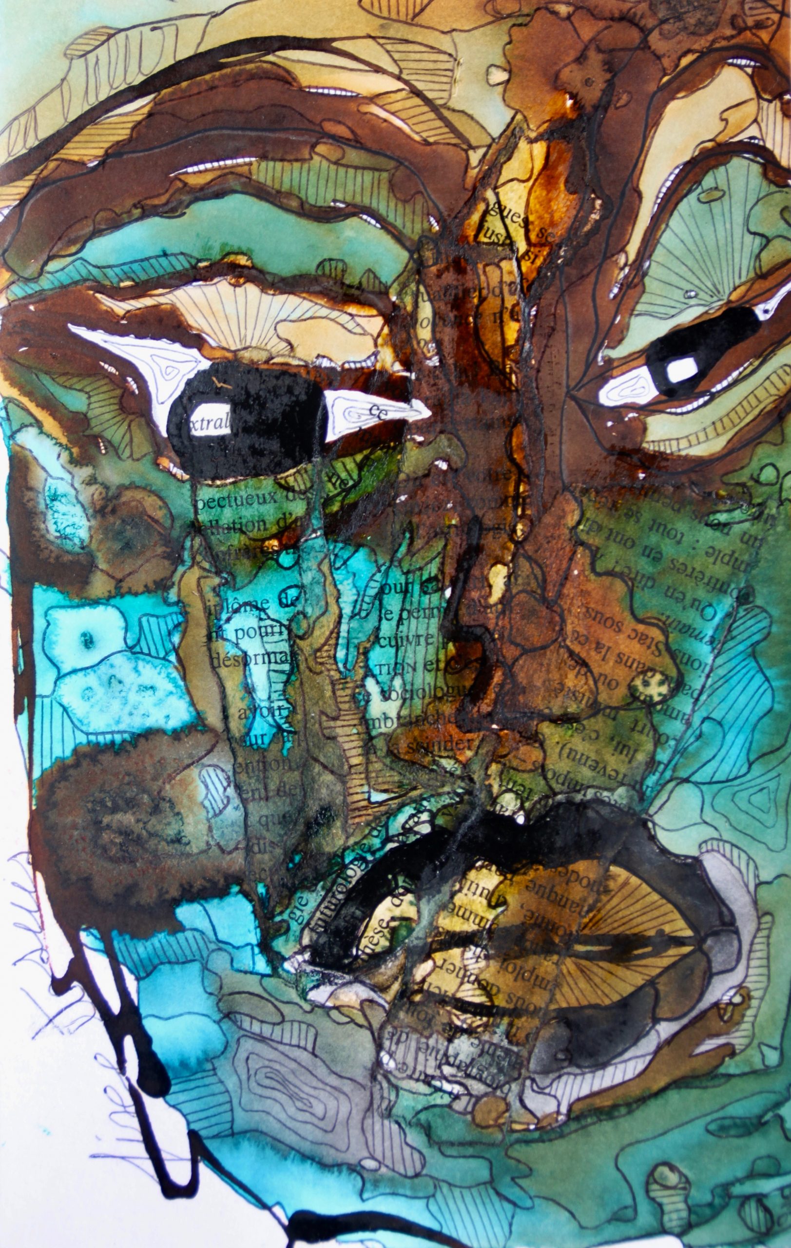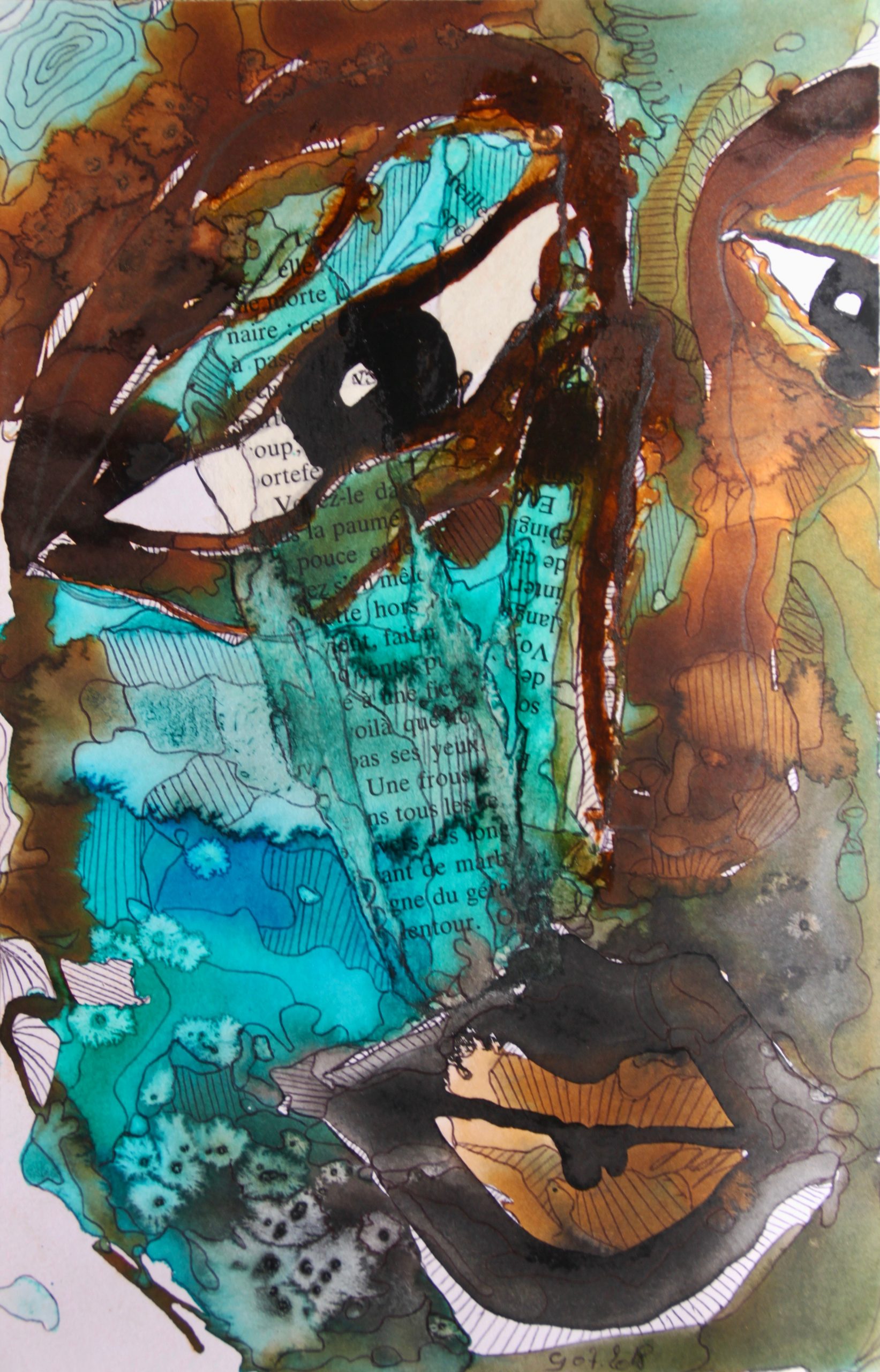J’associe très souvent aux encres, du brou de noix, du café, du thé, des pigments…
