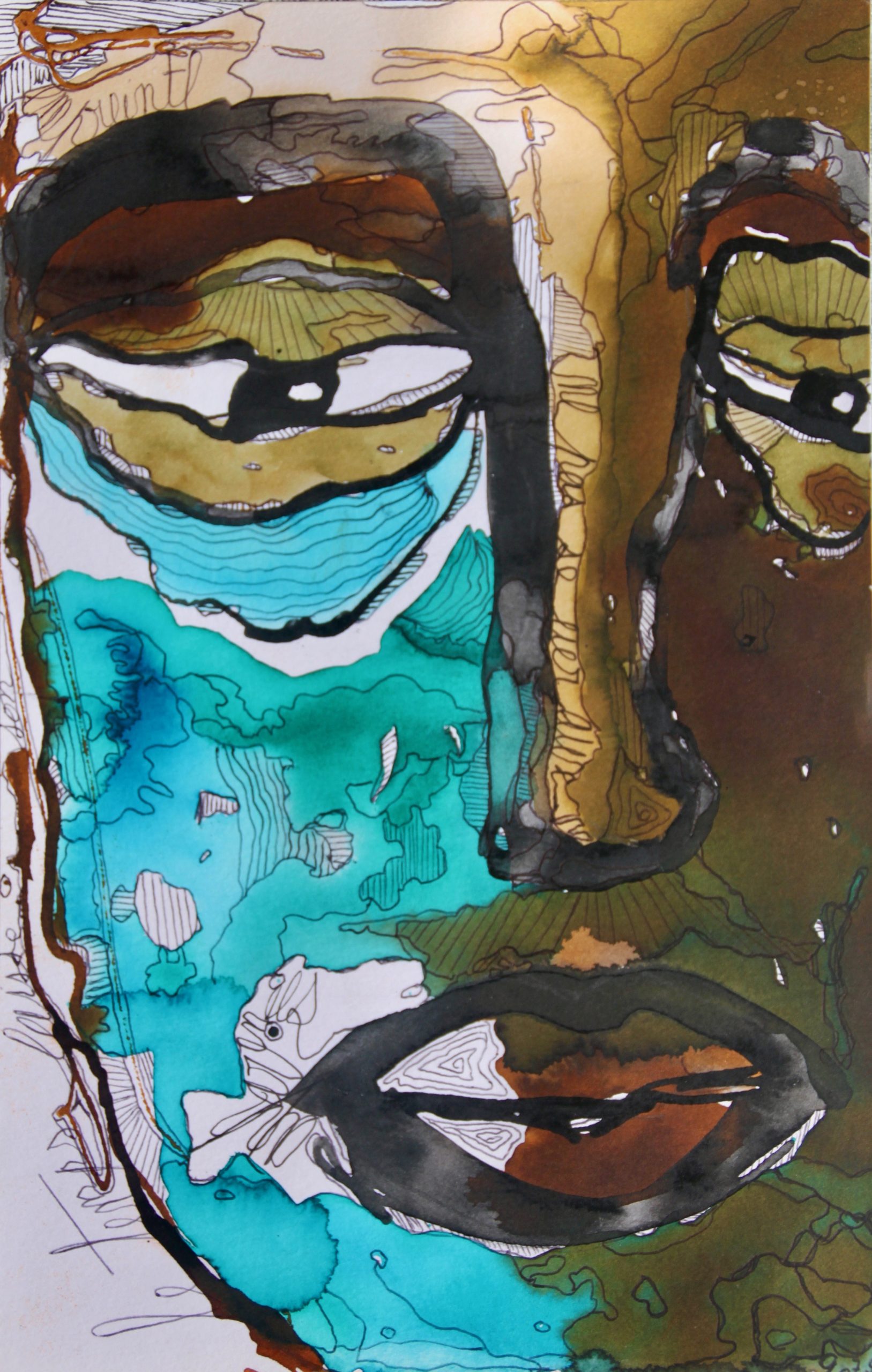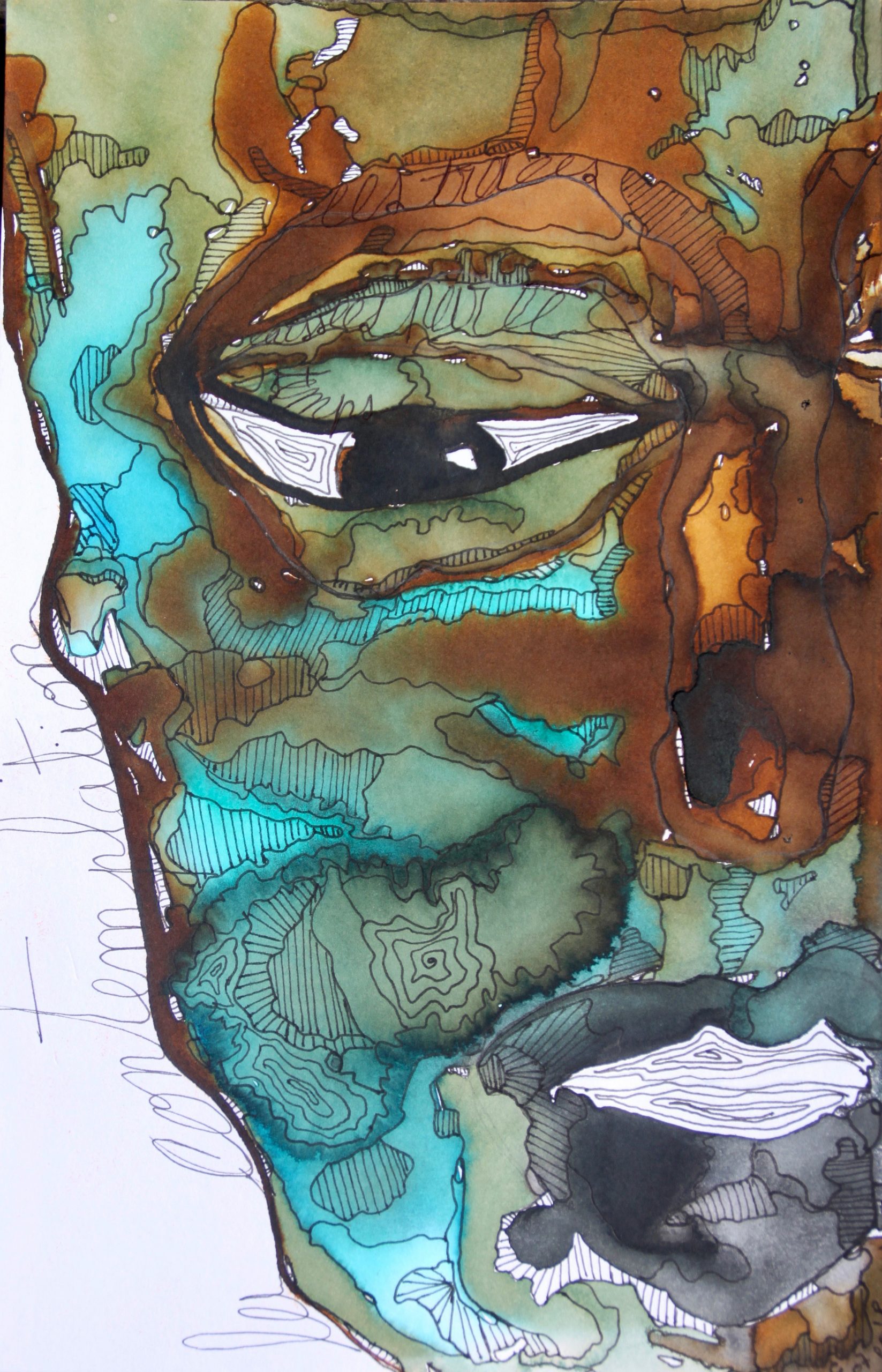 J’utilise le trait à l’encre de chine, qui fait référence au trait de vie, d’expression… qui une fois posé, ne peut disparaître, le trait qui se suffit à lui seul, tel une empreinte indélébile.